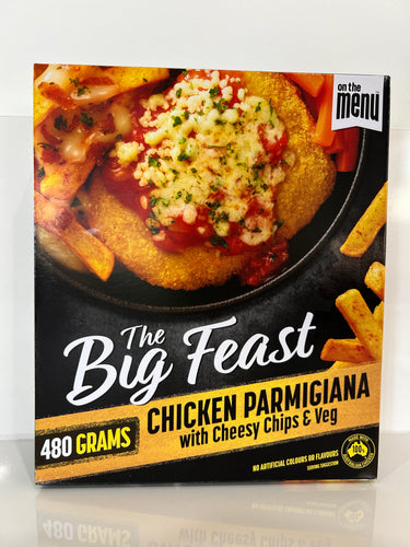 On The Menu Big Feast Chicken Parmigiana with Cheesy Chips & Veg 480g